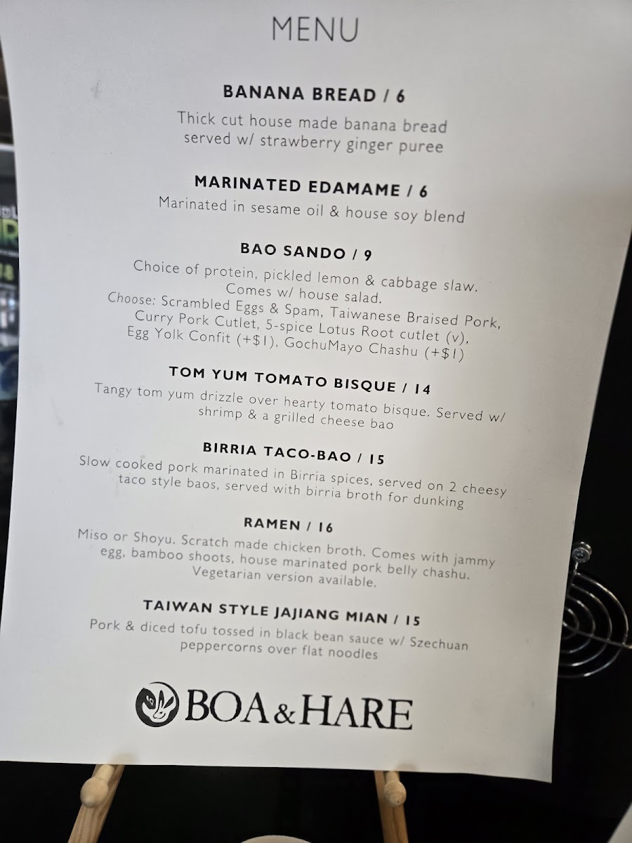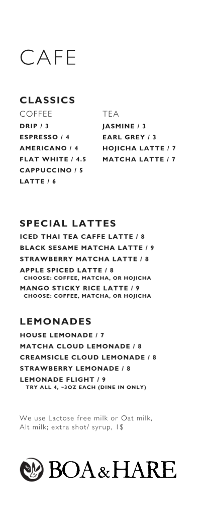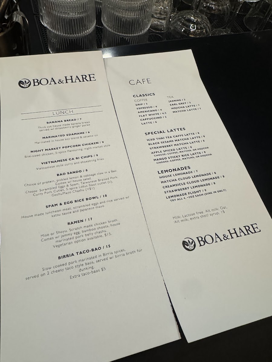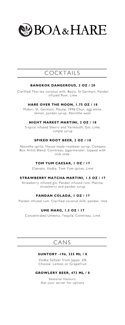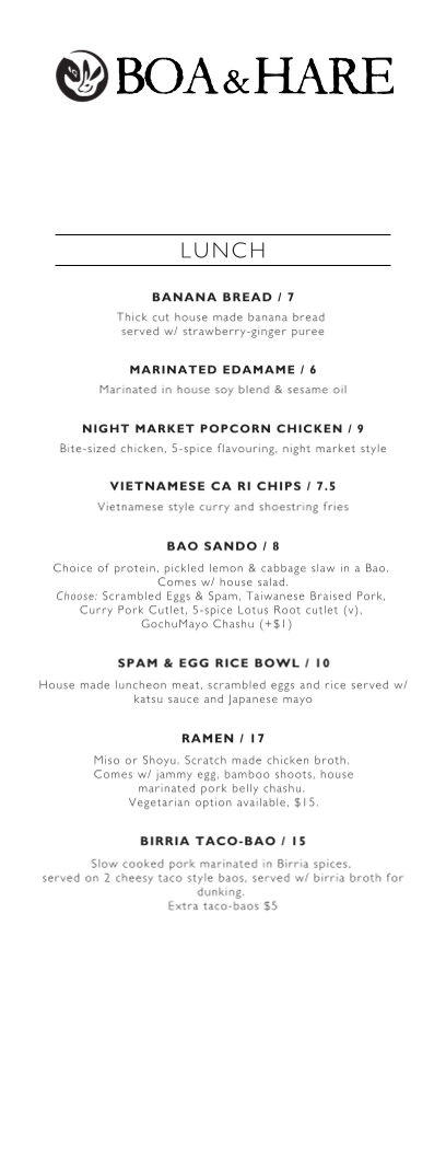 Boa & Hare Menu