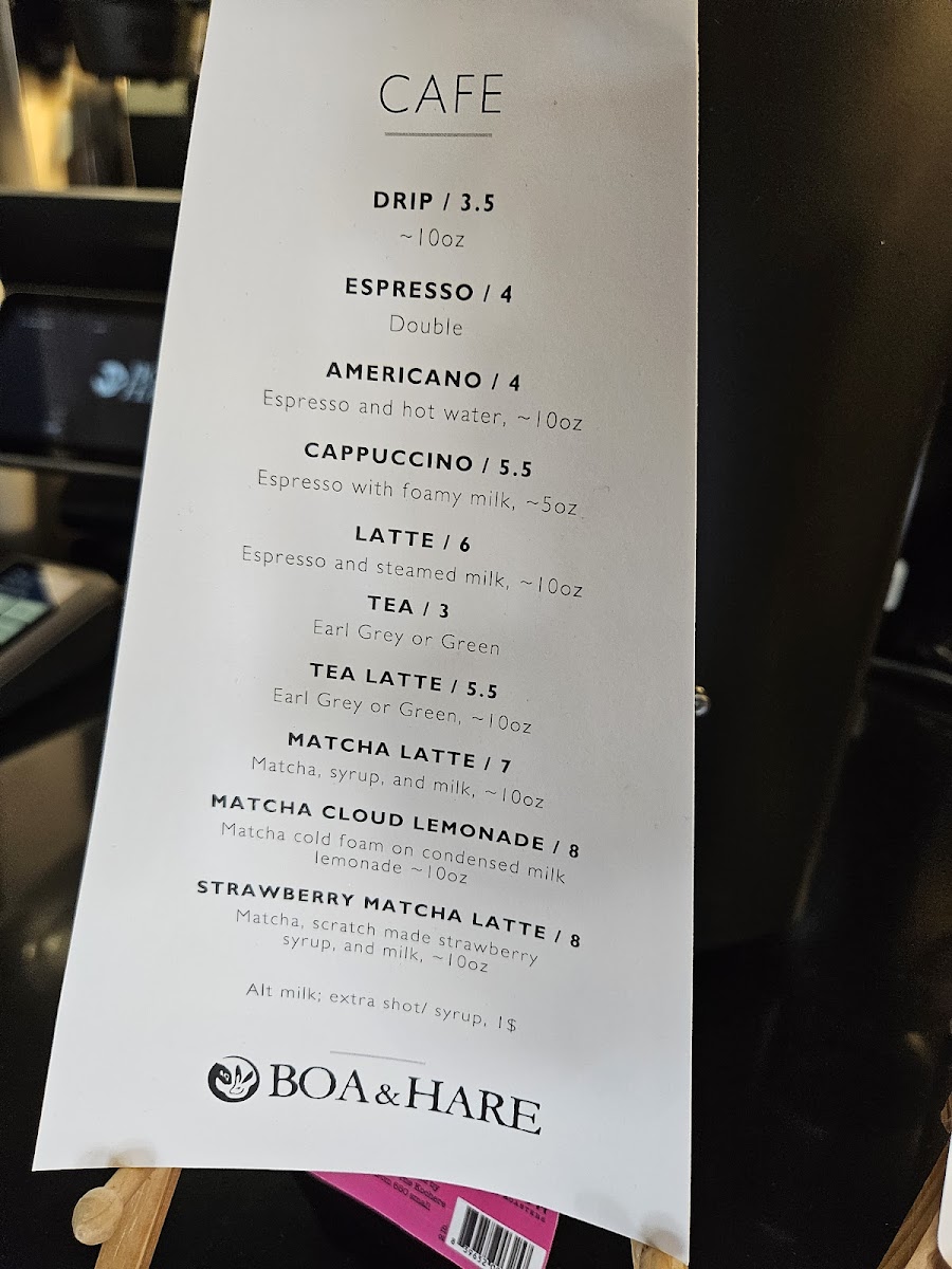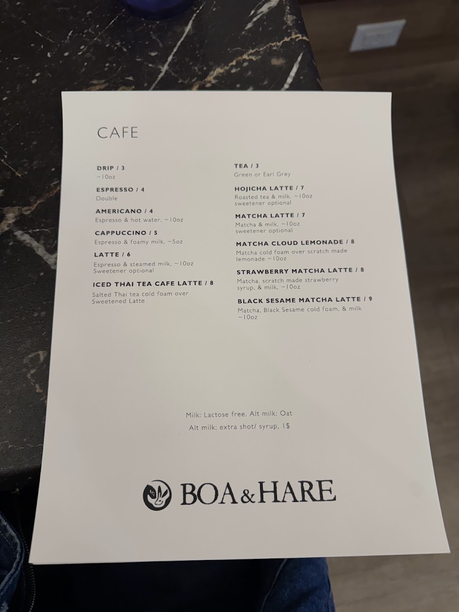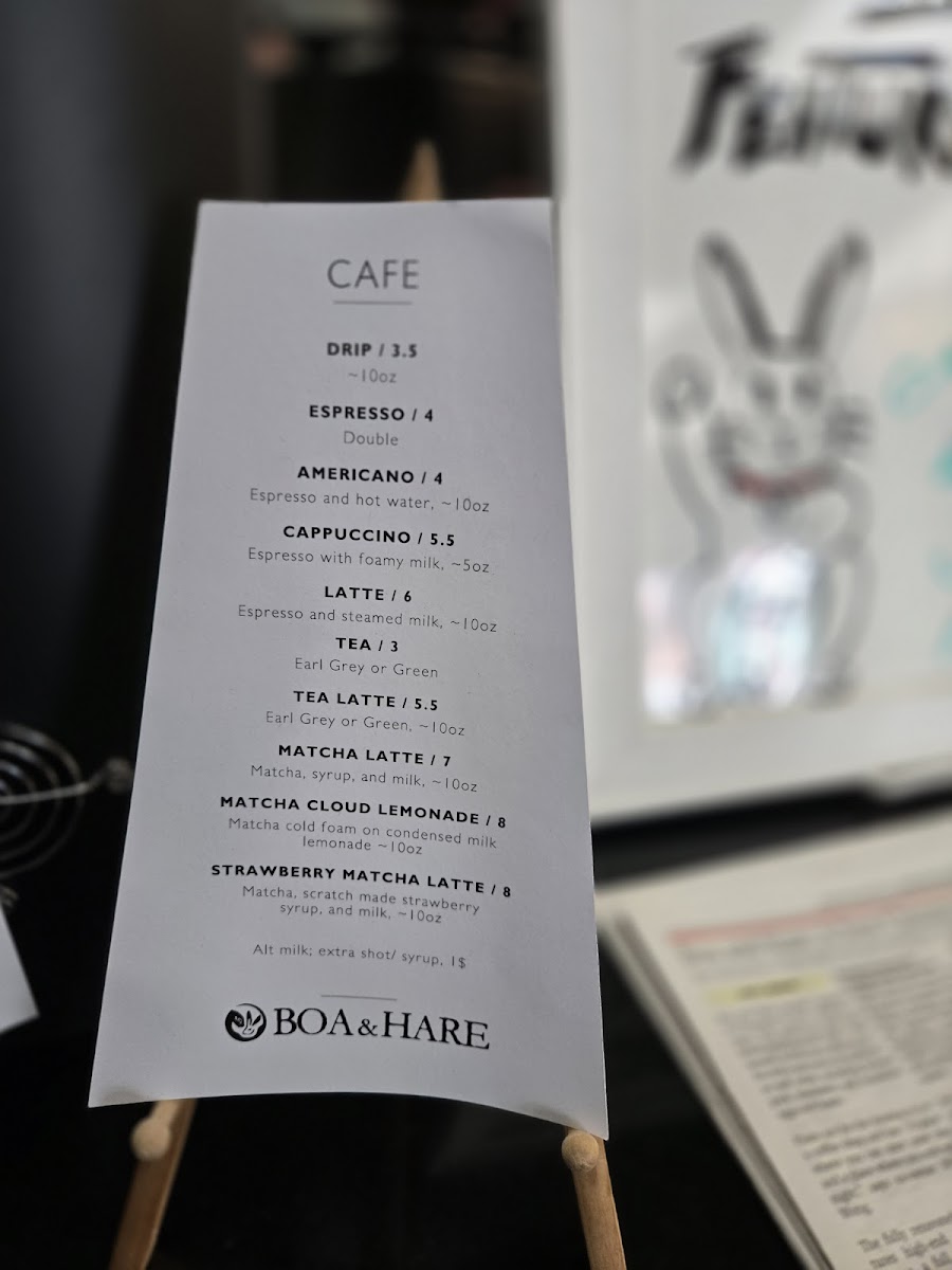 Boa & Hare Menu